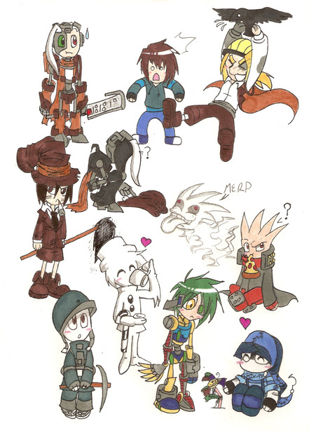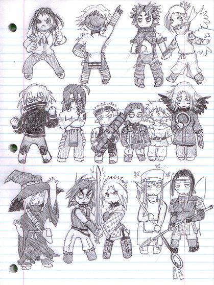 Chibi sheet 9! yes only one more to goDan Black- A Dream Knight warrior who destroys the nightmares that haunt our dreams. His partner Josh (guy next to him) and him are known as "Dream team no.7". Ironicly...there are only two teams. Dan is a senior in high school, strong silent type who wields boxing gloves.