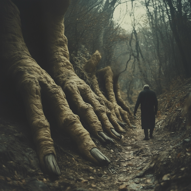 It seems like there is a forest humpback creature at the right. And it looks awesome! But it draws much attention to itself, I think. and that divides photo into two different parts, which doesn't match to each other well, in my opinion, despite amazing atmosphere.