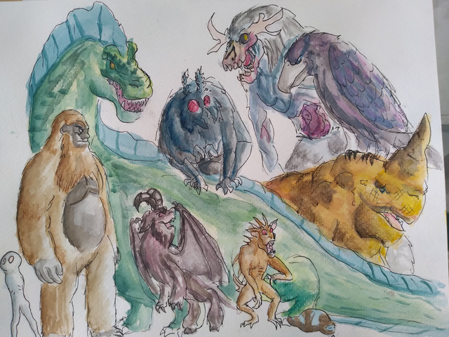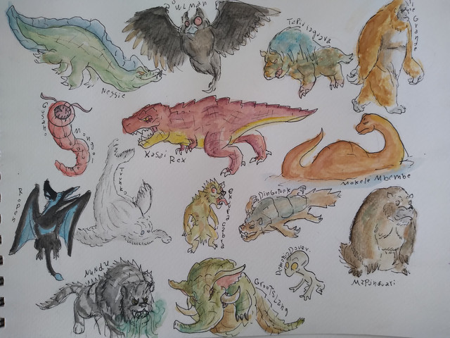 #nundu #cryptids #tapirluara #bigfoot #chupacabra #cockatrice #jerseydevil #lochnessmonster #owlman #sketchdrawing #thunderbird