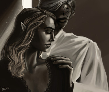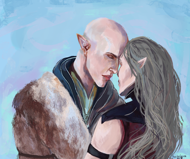 Amazing job😍. Love how he's standing in the shadow. Like the hot shadowy awesome elf he is. And your Lavellan is beautiful. Absolutely gorgeous work 😍