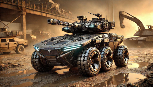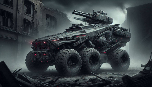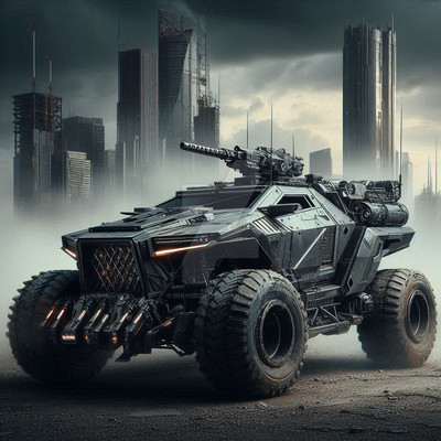 #car #military #digitalart #vehicle #ai #armor #black #cannon #dalle3 #engine #fantasy #futuristic #machine #metallic #postapocalyptic #rescue #turret #weapon #zombieapocalypse #aiart