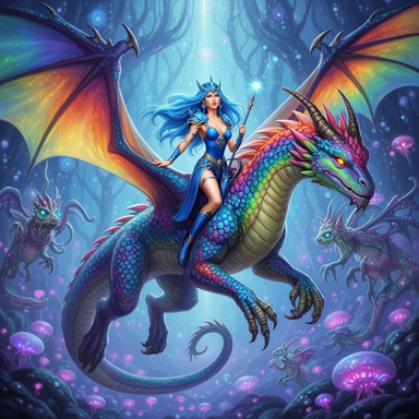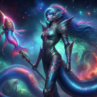 #ai #armor #dnd #dragon #fantasy #female #galaxy #irridescent #knight #magic #majestic #moonlight #night #rpg #scales #sky #staff #star #weapon #woman