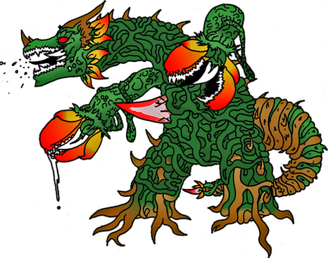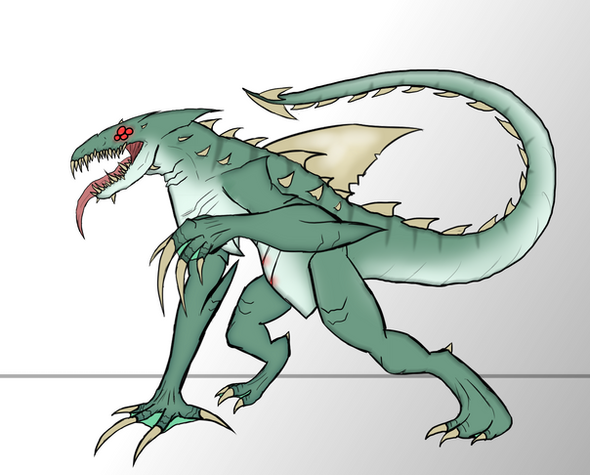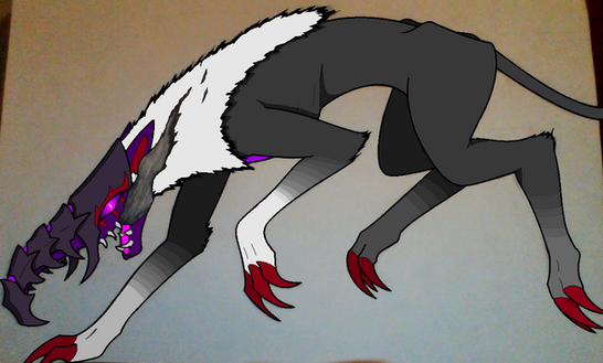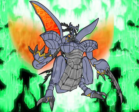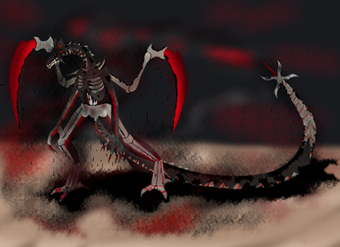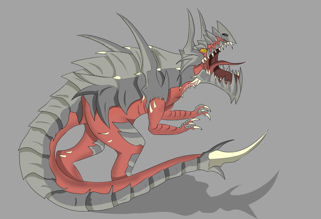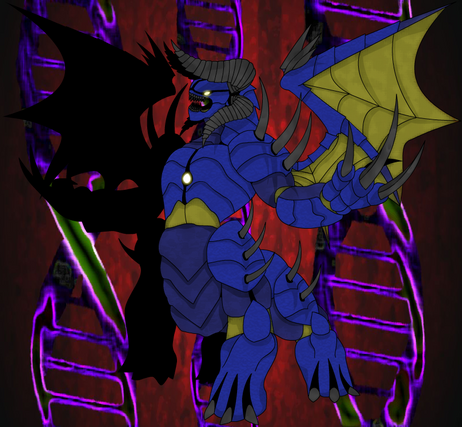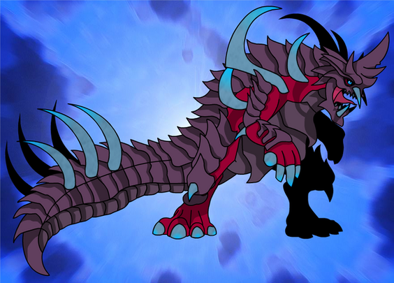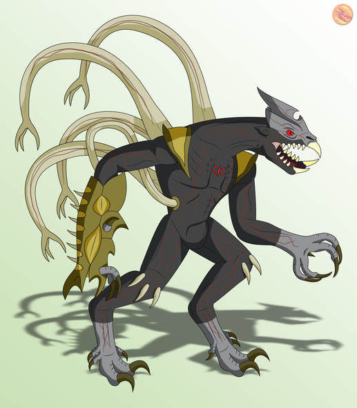 Akasha is Beyagara's mainly land-based fighter. It has incredibly powerful legs, giving it an impressive top speed, but also allowing it to leap great distances and deliver a devastating kick to opponents. It has a crest of bioluminescant protofeathers around the back of its skull that it uses as a warning display. The plates along its neck and upper back are also extendable, allowing it to break out of headlocks and other grappling attacks. It also possesses two modified arms that sports elongated claws, two retractable tentacles housed over its shoulder blades, elbow talons and incredible jaw strength which all add up to making it a lethal melee combatant.