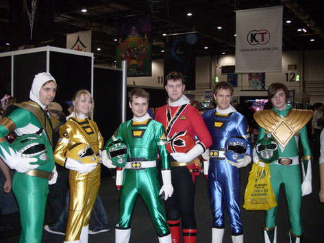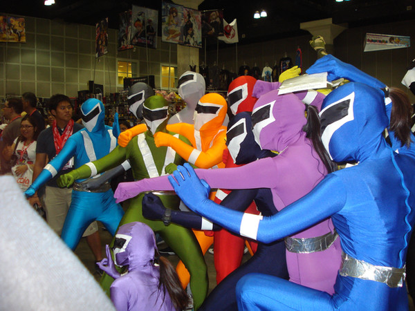 it was a dark eventful day, the angry cosplayer's had revolted against the official's and noone could stop them and their giant foam weapon's and their insanely short skirts..but then from nowhere the power ranger's appears..tho the black and the pink ranger were in the back room having naughty time and creating new punk coloured baby rangers....these 4 stood strong...stood fierce....stood proud....until i jumped over some kid screaming GLOMP and tackled the red ranger