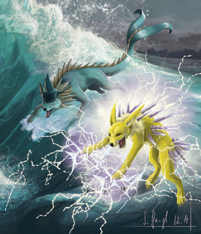 Jolteon, the lightning pokemon. I might end up doing a picture for each one of the eeveelutions, but we'll see...EDIT: I'm definitely going to do all the eeveelutions! Have a look at the links below to see the one's that have been completed so far.
