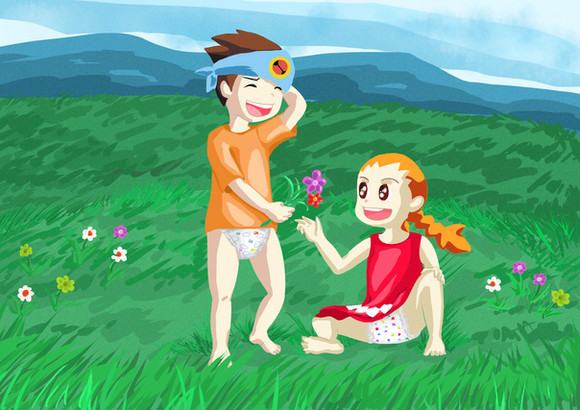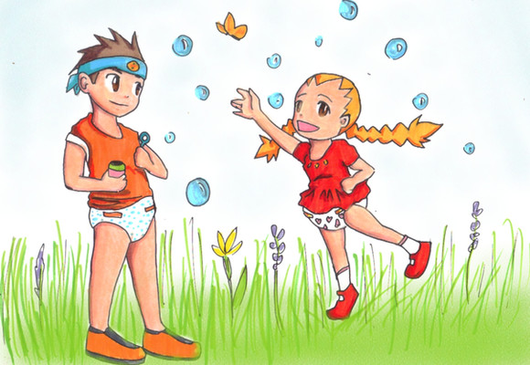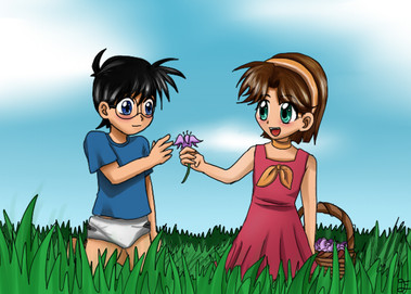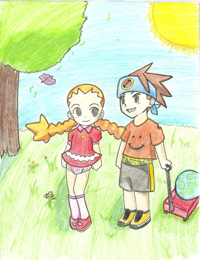 A drawing of two of my characters x]Hikari and Rui