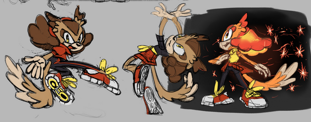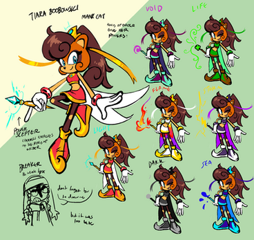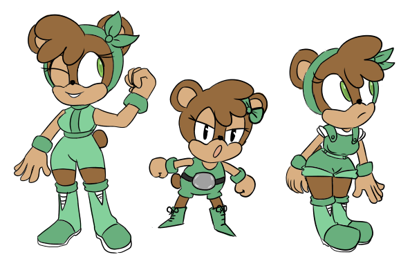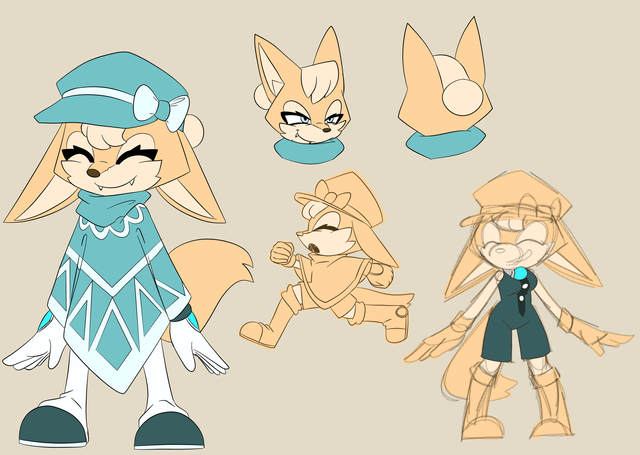 I wanted her to look a bit like Amy, the way Tails looks a bit like Sonic, since as I understand it they are best friends. Her tail is like a shirt-tail, or it's supposed to be.