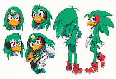 Tekno the canaryI have never read StC so this is uninformed. It's the same design I drew before, but with soft blue green instead of pale yellow green.