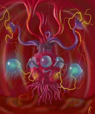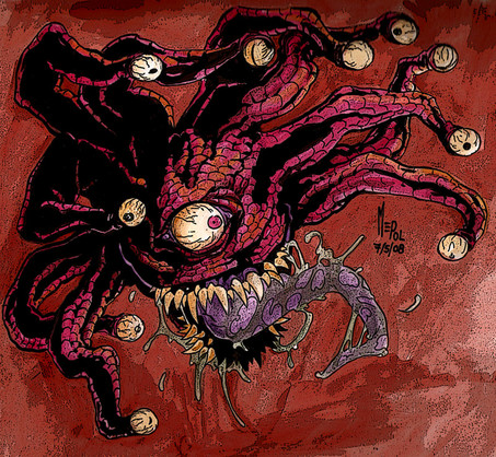 not really, its a beholder from D&D. it was so weird drawing traditionally again :/ every time i messed up i went and grabbed the mouse to hit the undo button lol but it has been nearly two years since i drew something in pencil.