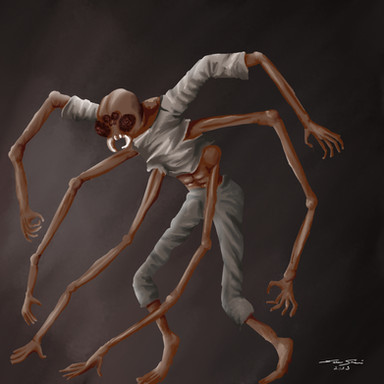 So freaky but so well drawn. I get goosebumps looking at its face and that pose just makes my mind scream "RUN!"