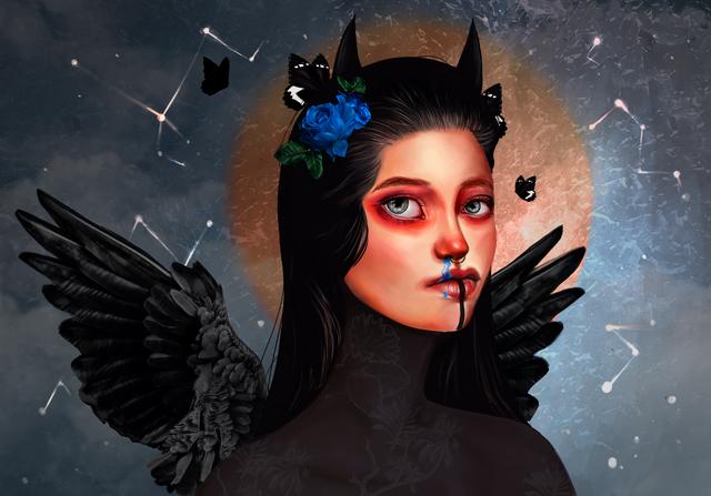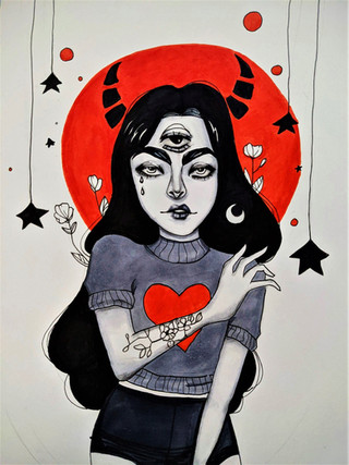 #portrait #traditionalart #surreal #characterdesign #acrylic #acrylicpainting #characterconcept #characterillustration #demon #demongirl #drawing #fantasy #flowers #illustration #illustrationart #painting #sketchbook #surrealfantasy #demonoc