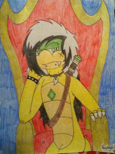 Though he doesn't like it, hes the son of Raiyn [more or less adopted]. Hes a mix between a fox and a koopa so XD hence why he looks rather odd. And hes a bit girly-looking, so don't think of him as a woman because he has no woman chest. Had to add a single classic from Mario that the koopas seem to love. ^^ hope you like himAngus Koopa © His player
