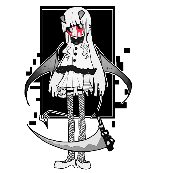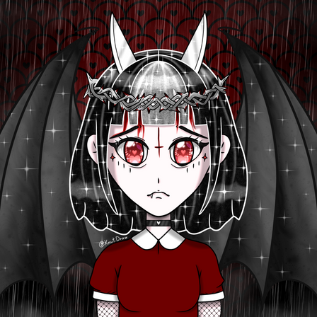 #artist #artwork #beginnerartist #blood #crown #demon #devil #digitalart #drawing #eyes #fishnets #guro #knife #oc #skirt #twitch #yandere #moots #clipstudiopaint #art #artistsupport #gurocore #vtuber #envtuber #artmoots