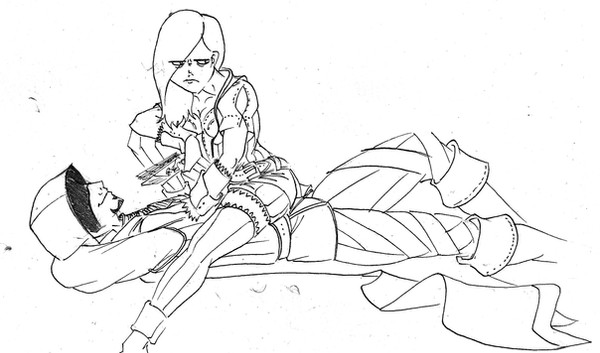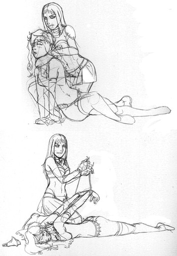 Argh! I drew a continuation of this to be posted later, but unfortunately her boots remain where they are. I swear it's not to be a dick, it's just how it turned out.