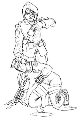 After eliminating the rest of the invading enemy patrol, the stealth operative kept one soldier in tact for the purpose of interrogation.At least, that's what it would say on the report. ; 3