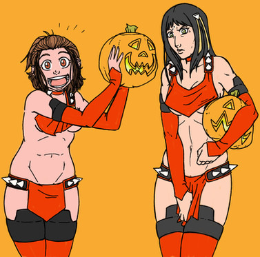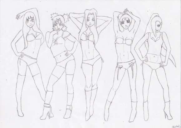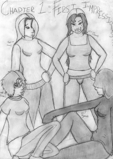If I had a major artistic flaw it's that I often make my legs a little short. XD It might be a little tricky here, because the 'cuffs' of their boots are about four inches from the ankle up... I think in the future I might draw all characters individually and then tie them all together in PS. : ]
