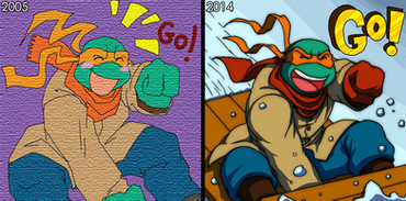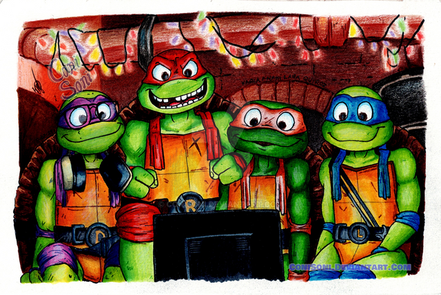 Yeah, this drawing was made a while ago, when the TMNT property was sold to Nickelodeon by its original creator. People weren't sure if it was going to be a good thing or a disaster.