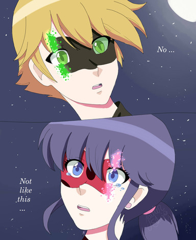 "This- isn't you, Cat Noire!" Ladybug had been ambushed by her partner, and after a rough fight he had the upper hand- with only a few moments of their transformations left to spare. She could see the hesitation in his face as he struggled against the lulling, convincing voice in his head, one canine sinking into his lower lip.Take her Miraculous!