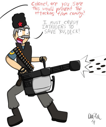 God damn it, Spy! Quit butting into everyone else's comic! Why can't you...ARGH! ARGH! ARGH! HEAVY PUT ON A SHIRT!!!