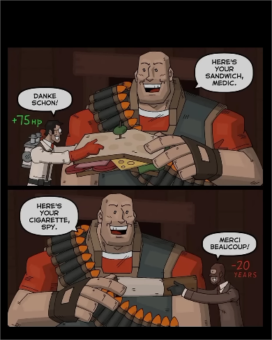 Heavy and Spy belong to Valve. Elvis belongs to Heavy's heart.