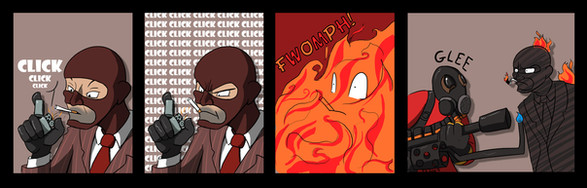 And then Spy wakes up from his terrible dream, only to realize... Pyro is standing there by his bed! (Dun dun duun!)Medic