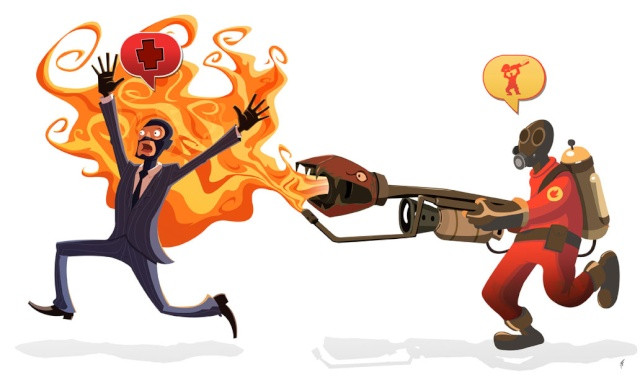 The soulless monster Pyro belongs to Valve. They can keep him/her/it. Oh, and Spy belongs to them too.