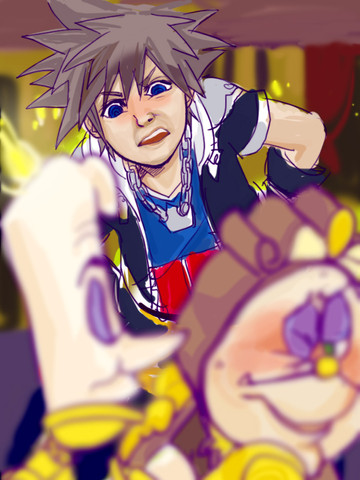Sorta reminds me of the time in KHFM, when Xemnas fought Sora. Xemnas phased through Sora and Sora had the same expression as Roxas had and ended up falling on his butt.