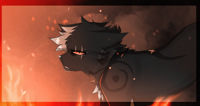 Alright, so Enki and his brothers were born in captivity with the humans, and they take away the toms' mother soon after. Enki and his brothers recover from their loss but soon enough are taken away to be experimented on. Out it all three of them Enki was the only successful experiment, gaining ice powers and his red eyes. His brothers however, turned into soulless monsters. Enki was soon saved by another successful experiment cat named Tsueko (gray with the red marking under his eye). Tsueko brings Enki to a group of cats in the forest who have been experimented on, a place where he'd be safe. Enki soon falls for a cat named Erable (brown tabby cat with green eyes). Erable however, does not return the feelings- but Enki follows her around and a cat named Ayla (white with red eyes) notices (being Erable's best friend). Another cat named Notsoe (little black cat with blue and yellow eyes) joins the group and becomes friends with some of the cats, even developing feelings for Erable and getting along very well with her- Enki does not like this, so he confronts Notsoe and attacks him. Ayla defends Notsoe with her fire powers and confronts Enki. He carries on and tries to attack her but fails, and Ayla suggests that she teaches Enki how to fight. Enki is stubborn and declines for awhile before going off to train with her. The two become close and Enki starts to like her, and she returns the feelings. Not long after, they have a kit named Ayki (black with white and cream markings, red and blue eyes). Enki takes him to the forest where humans come, capturing Ayki. Enki tries to defend his son but is attacked by his brother, who is still a soulless monster. Enki returns to Ayla and tells her that the humans took Ayki. A long time passes and Enki is having dreams about his poor kit. One day he goes to the city and is determined to get his son back. He fights off monsters and soon finds Ayki, but his kit refuses to come back with him, saying that his father didnt come to rescue him sooner. Enki goes back home to Ayla and is injured very badly. Ayla is sad about her love, and Erable comes to help. She attempts to heal him with her powers, and he opens his eyes.