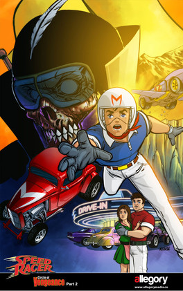 This is my cover for Speed Racer, Circle of Vengeance #1. Ask your retailer for Diamond Order Code JUL110782 F to order your copy. Inks and final colors.This is a hugely personal project for me and my friends who have been working on this for a long time. Tommy Yune (the writer) and I have been batting around stories for Speed Racer for years so its gratifying that we finally get to execute them. My good friends Robby Musso (interior art), and James Rochelle (colors) round out the creative team on this book. Tommy and I are also doing variant covers.
