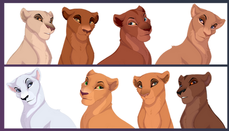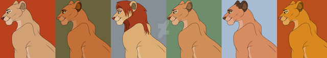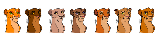 I definitely like the first and fifth versions Since there are many lionesses with warm pale and brown fur, the characters with cool fur colors are not so much :3