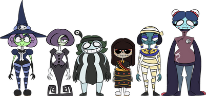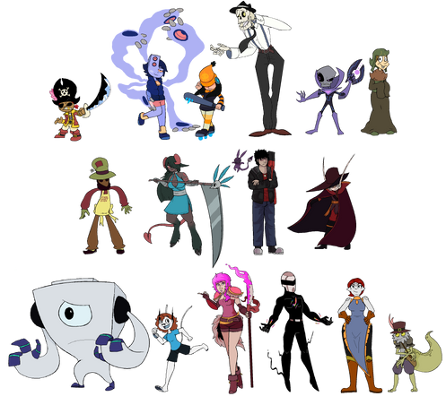 This is a lineup of the OCs I got to color, I still have a few more to finish and some others that I still can't get to a state I'm happy with. Also, too much purple, blue, and chicks, so for the next batch I'll try to add some variation to this.Going to scraps, since these are spread around my gallery anyway. I'll be also updating this every once in a while to add more characters.