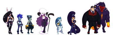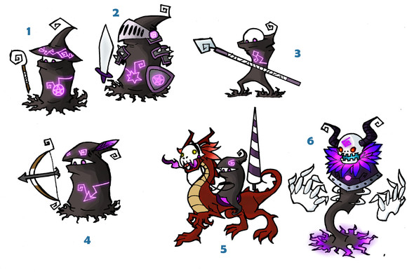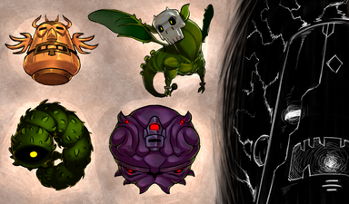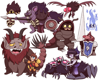 The first two are right, but the other ones are original stuff, although I must say the skeleton might have been inspired a bit of Vanaduke, can't remember right now XD