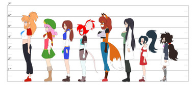 Man, have I always wanted to do one of these. My favorite japanese discovery as of late is the manga/anime character proportion charts. So here I present, all five girls and how they compare.