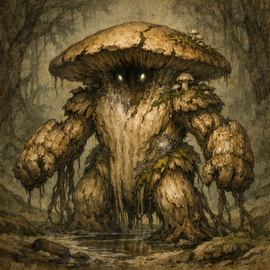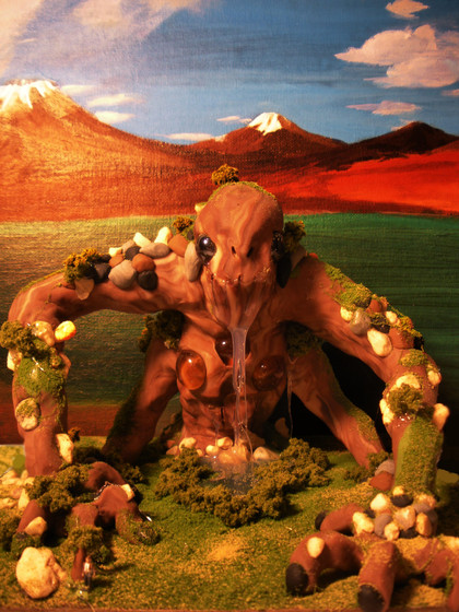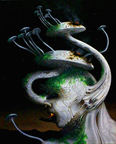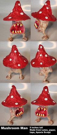 Sculpey, tissue dipped in paint. App. 12 inches tall.One of my all-time favorite films is the 1963 Japanese horror flic Matango. Figures have been made representing the mushroom creature, but for the most part they are a bit toy-ish, and more than a bit expensive. Being an aficionado of monster model kits (which I collect), I had great fun doing this, and I say down with overpriced imported resin figurative models, be they monster, or otherwise.