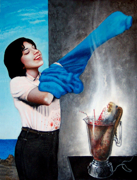 Polymer clay, app. 13 inches tall (including base).The title is actually NeukΓΆln, but apparently the ΓΆ problemental.
