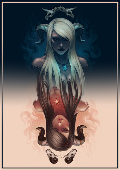 A collaborative piece I did with my sister Artemis. She worked on the right side of the character, while I did the left.Related content