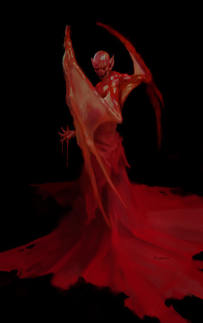 love the style, the red of the capes cuts through the piece like a well sharped blade, the face is pretty unsettling too, kind of like your mum when you missed 15 phone calls