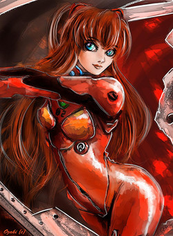 Skomciałem już na fejsie, ale to jest tak dobre, że muszę skomciać jeszcze raz!! C: Przede wszystkim, szacun za genialny pomysł, rewelacyjny motor i pozę Asuki c: Świetnie wykombinowałeś też to halftonowe tło. Obstawiam, że zastosowałeś na końcu jakiś filtr z rozmazywaniem bo całość ma taki fajny miękki charakter pomimo, że cienie są twarde c: Z rzeczy które można by podciągnąć w kolejnych pracach: trochę odważniej z cieniem (więcej kolorów, więcej zagięć itd.) i, podobnie jak Azuma, jako zadanie domowe: pooglądać trochę cycków (do celów edukacyjnych cienie itd. itp., poproś narzeczoną o pomoc :D) Tak trzymaj stary, już lecę komciać Rei (!!) i ciekaw jestem czy narysujesz coś z Mari >D