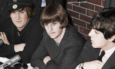 George Harrison and Ringo Starr (Richard Starkey) on the set of the Beatles movie Help! in 1965Colored by me in GIMP time 30 Minutes