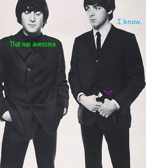 I saw this on tumblr and it was dying to happen!It goes from: George (purple), Paul (blue), John (green), and Ringo (red) :3