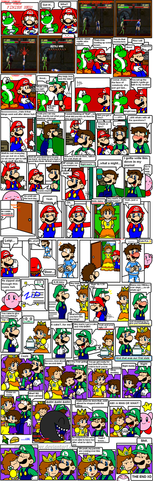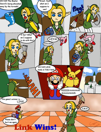 Geez! This took me forever!! I wish I would have got it done sooner, if it weren't for the fact that I had school work during the time that I was making it and I had to get some other stuff done to transfer to another university. Also I wanted to try something new with my comics by having thicker outlines. It looks nice and all, but it just consumed more of my time. Plus didn't know that the images were going to be so big that I had to expand my canvas size and every command that I gave would take some time to finish. Then there was this thing going on with my computer that I had to restart it and I didn't realize that I had one of the panels selected and deleted it by accident and by the time the computer loaded back up, I couldn't get it back. So I had to redraw Mario and Peach again. At least I still had a drawing of Bowser, though.So this was meant to be completed during the time that Link was available for Mario Kart 8, with the style that I chose to draw it in took a really long time to finish. I wish that I would have made a shorter version, but I was already so far in, I couldn't turn back and I just had to finish it. Anyway, I finally finished it so now I can work on some other drawings that I have planned and hopefully I try to work on another animation if I ever have the time to self teach myself. Hopefully I still remember how to do it.