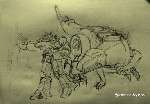 ....so, a while back went and told everyone on YouTube that, as a wee lad, he used to pretend to be a dinosuar (and what boy hasn't, really) and demonstrated such activity.....and this ties into something else he's done that I've been meening to doodle stuff of.....