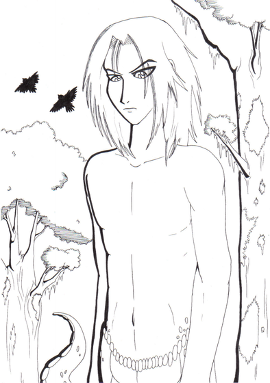 Ashe was dumped in an alley where the hero of the comic, Gabriel, found him. Gabe took Ashe home with him and healed him up quite nicely. They became good friends, and Ashe, for a short while, had a crush on Gabe. Eventually it bled off into a deeply rooted friendship. Ashe considered Gabe his brother. Ashe knew that Gabriel was a vampire and he told him that he never wanted to be one. Well, when Ashe was nineteen Gabe had to go away for a few days. He said he'd be back around a certain time on a specific day and that they'd meet at a pub and he'd tell Ashe about his trip. Ashe walked to the pub, Gabe was already there. Gabriel left the pub to greet Ashe halfway because he sensed him coming. A man came out of an alley, grabbed Ashe and then slit his throat. He realy cut Ashe's head clean off. Gabriel was too far away to stop the guy from doing that. He got to Ashe's side as the guy ran off with Ashe's coin purse. Gabriel was, of course, too concerned about his friend to kill the other guy. Gabe didn't want to loose Ashe. So he turned him. Only problem is, there's a certain line that you do not cross, deathwise, when turning someone. Ashe was just past that line.