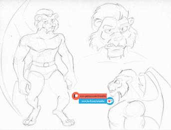 Concept sketches for 's second request. This is Benuthet, an Egyptian gargoyle based on a lion.I know you asked for him to be wearing the symbol of Thoth, but I'm not sure if you mean the eye or the bird head of Thoth, so please let me know! And please do tell me what you think and whether you want any changes made.