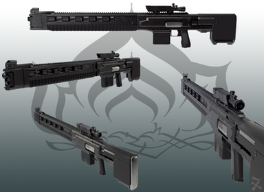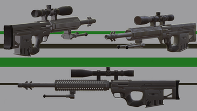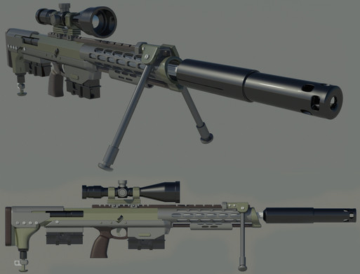 Here's the DECAP-R (Designated Elite Combat Armor-Piercing Rifle). Or Decapre, to those who know herThe Sniper Rifle was originally designed and modeled by Matt Pugnetti , who also designed and modeled the Sub-machine gun and Machine gun for the mod. He also basically the equivalent of Lead Designer and a good friend of the project lead. He was not entirely happy with his rifle, and I took a crack at it so he could move on to designing other elements. (Incidentally, his design vaguely resembled a RAMO M650)