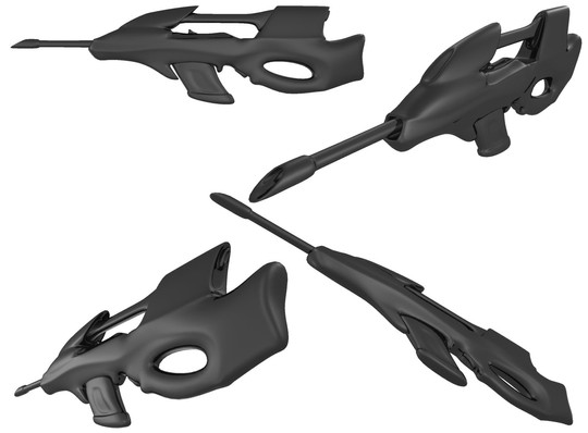 this has a killer side profile, the only elements design wise that catch my eye in the wrong way is the scope. i really love the idea for it, but the mechanical area that is animated is too simplistic, or rather, too out of place in my opinion. the flat top joint really throws away my belief that this is a real weapon.