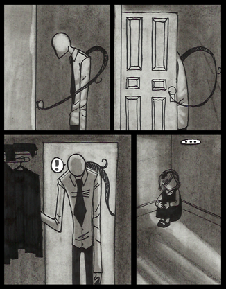 I like how Slenderman is introduced in the first panel though. His faceless expression and faded legs are my kind of taste in frightening designs.