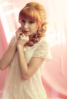 lovely colours of her hair and the dress. and a wonderful girl .