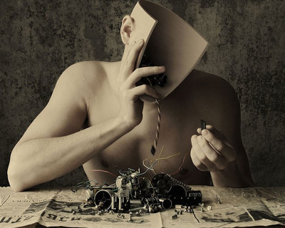 The brain as a computer analogy has probably been around since before Turing and I'm sure Cognitive Neuroscience would have some interesting things to say about the cyber age. But it could also be a representation of Self-Psychoanalysis or something like that.
