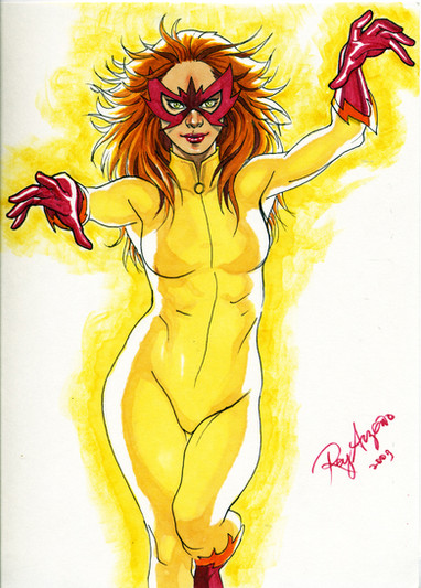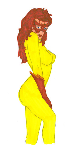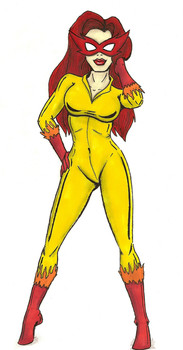 Is it bad that I am not overly familiar with the character? I know her mostly from your drawings and I think I remember seeing her in one or two comics. I'm sure she's a great character. Mayhaps I should look into her. As for you though, I think you need to take a session in FireStar obsession anonymous. Very stylish image as always, I think all characters look awesome in your style
